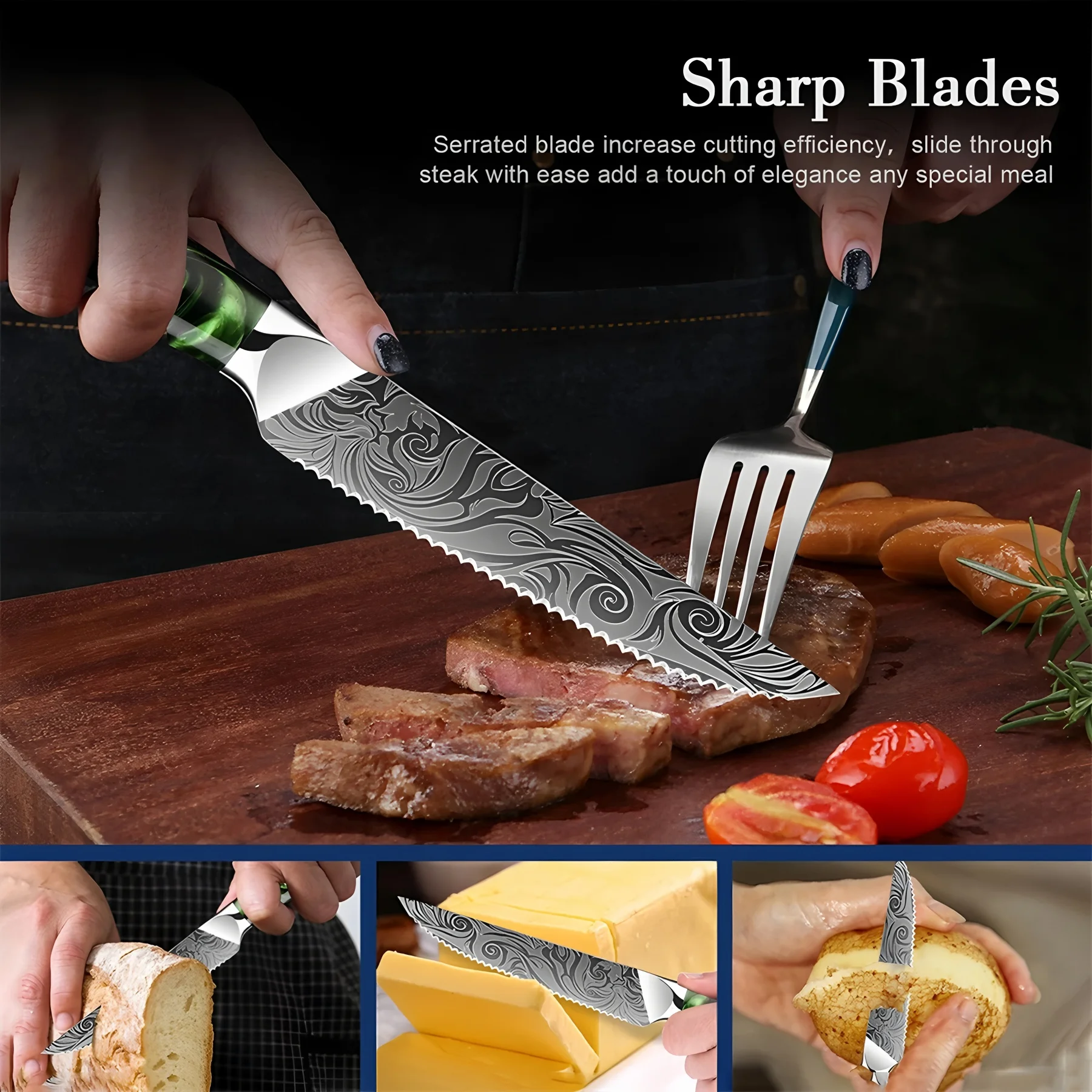 1/2/4/6PCS,Household 67 Layer Damascus Steel Serrated Beef Steak Knife Set Utility Knife Kitchen Stuff Halloween Christmas gifts