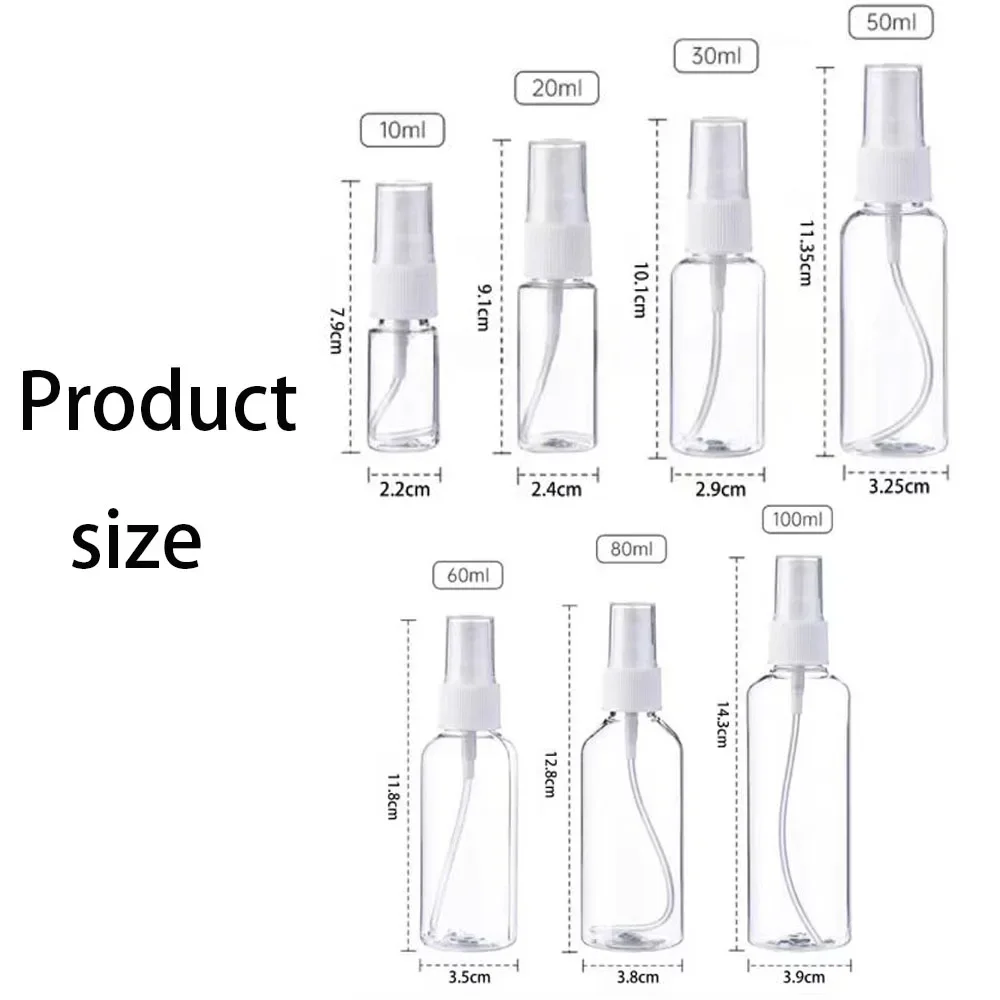 20PCS 10/20/30/50/60/100ML Refillable Clear Plastic Empty Mini Spray Container for Travel Cleaning Makeup Bottles Wholesale