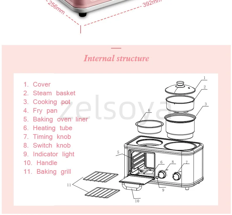 - Function: Frying Pan,Toaster Oven,Porridge Cooking