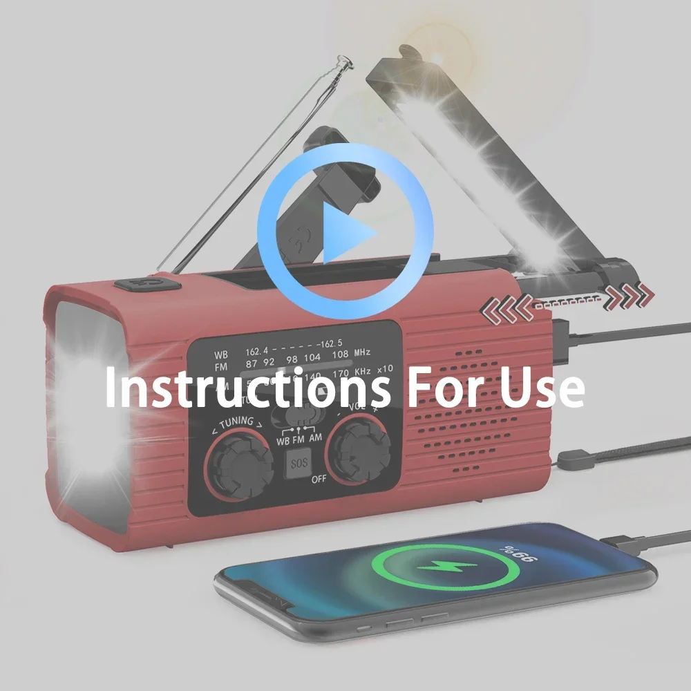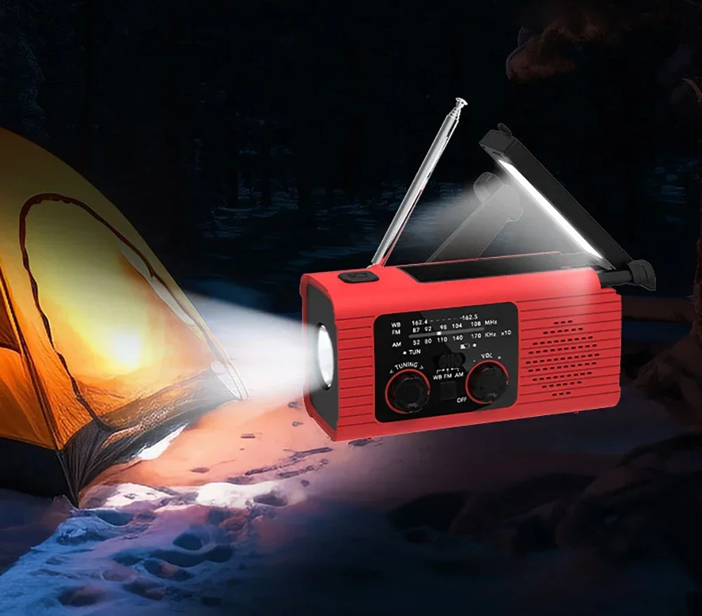 4000 mAh Portable Radio Outdoor Emergency Flashlight USB Solar Charging Radio SOS Alarm Radio FM/AM Available Rechargeable Radio