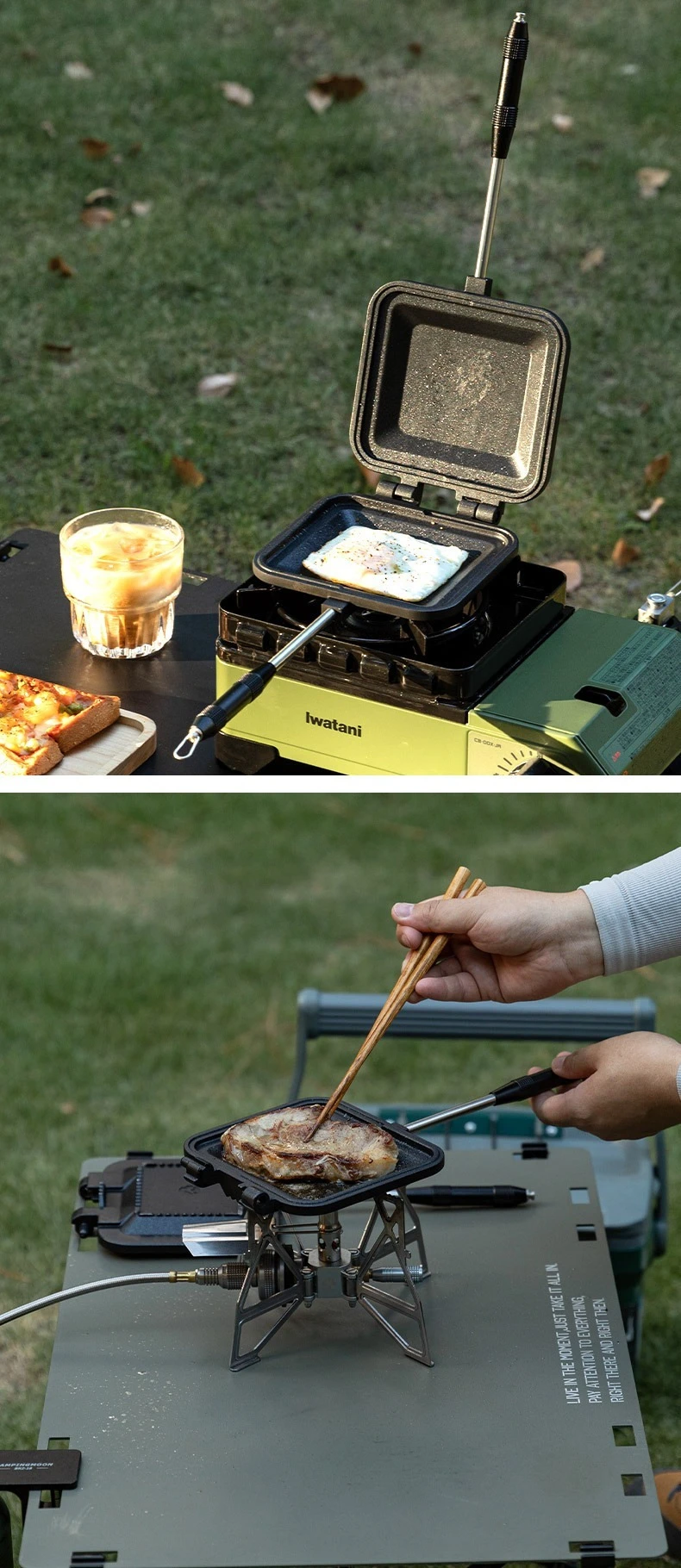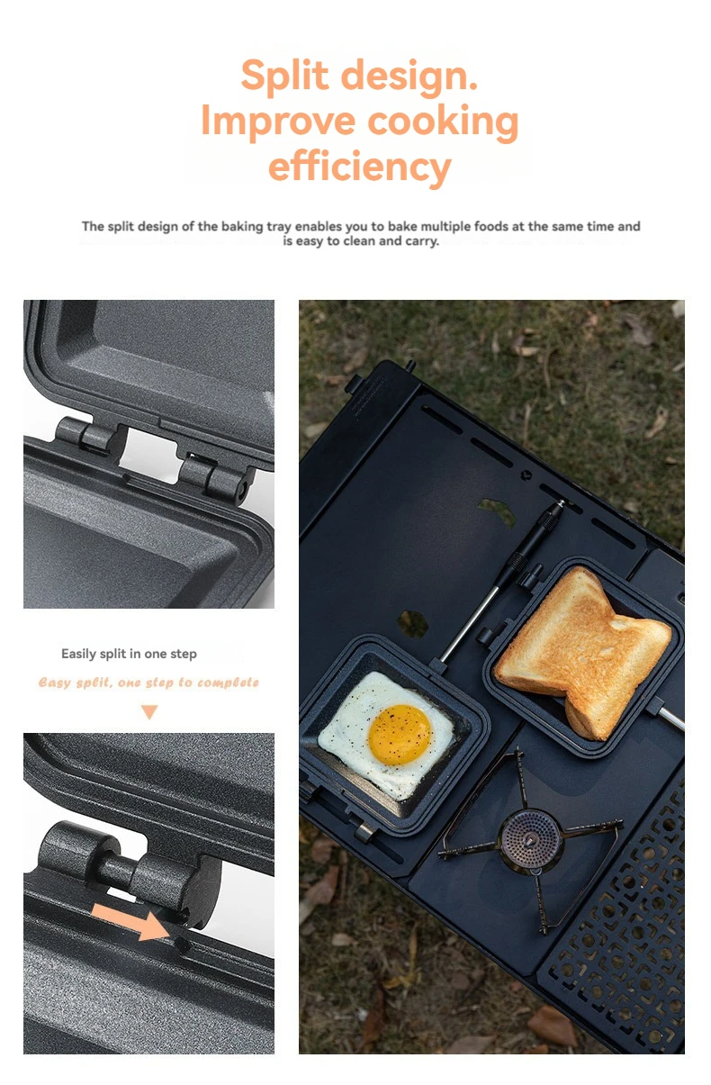 CAMPINGMOON BKTT-1315 Double-sided Non Stick Bread Sandwich Grill Versatile Camping Breakfast Sandwich Pan Baking Tray