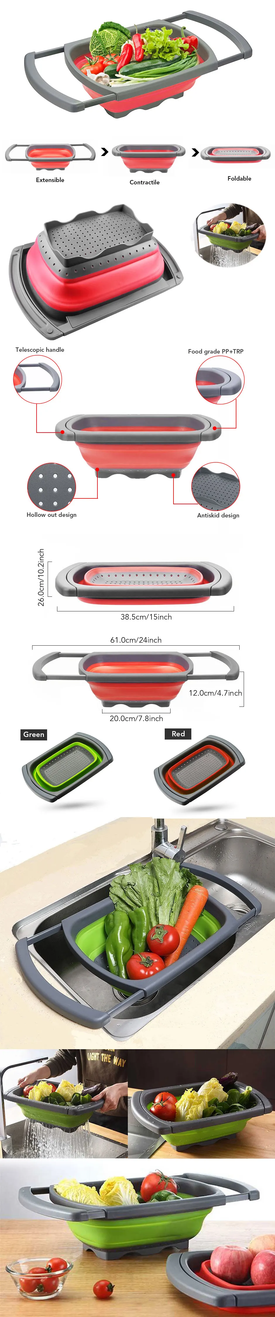 Collapsible Rectangular Silicone Drain Basket Retractable Water Filter Basket Household Fruit And Vegetable Filter Basket