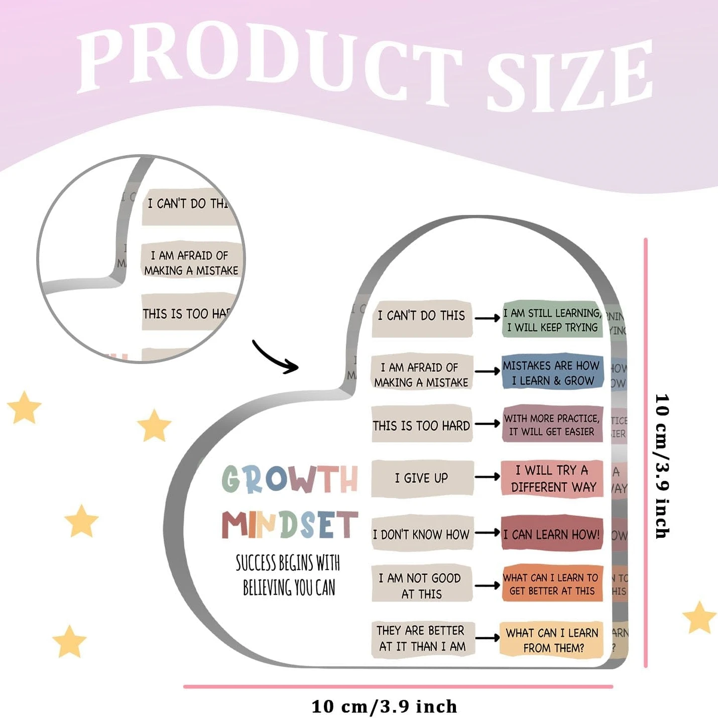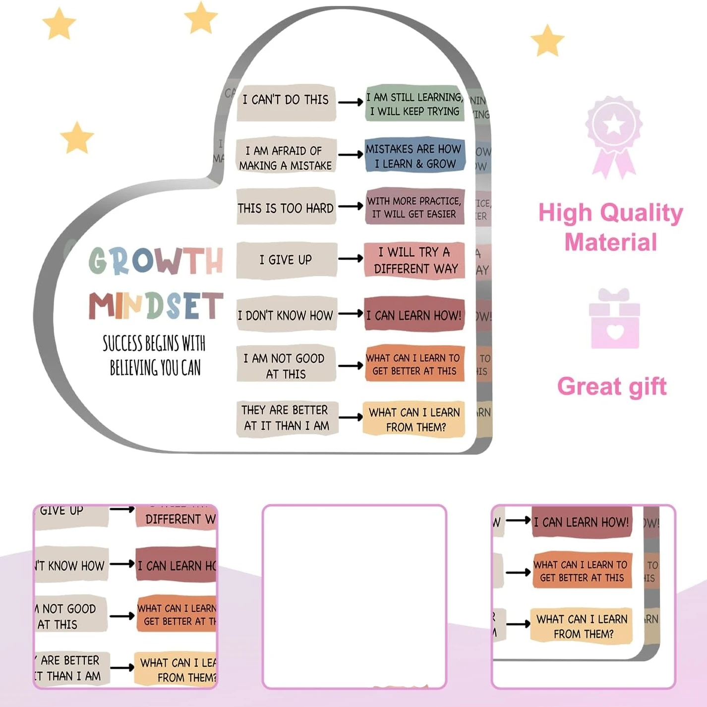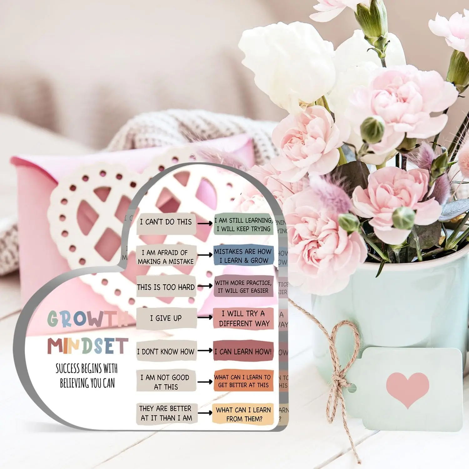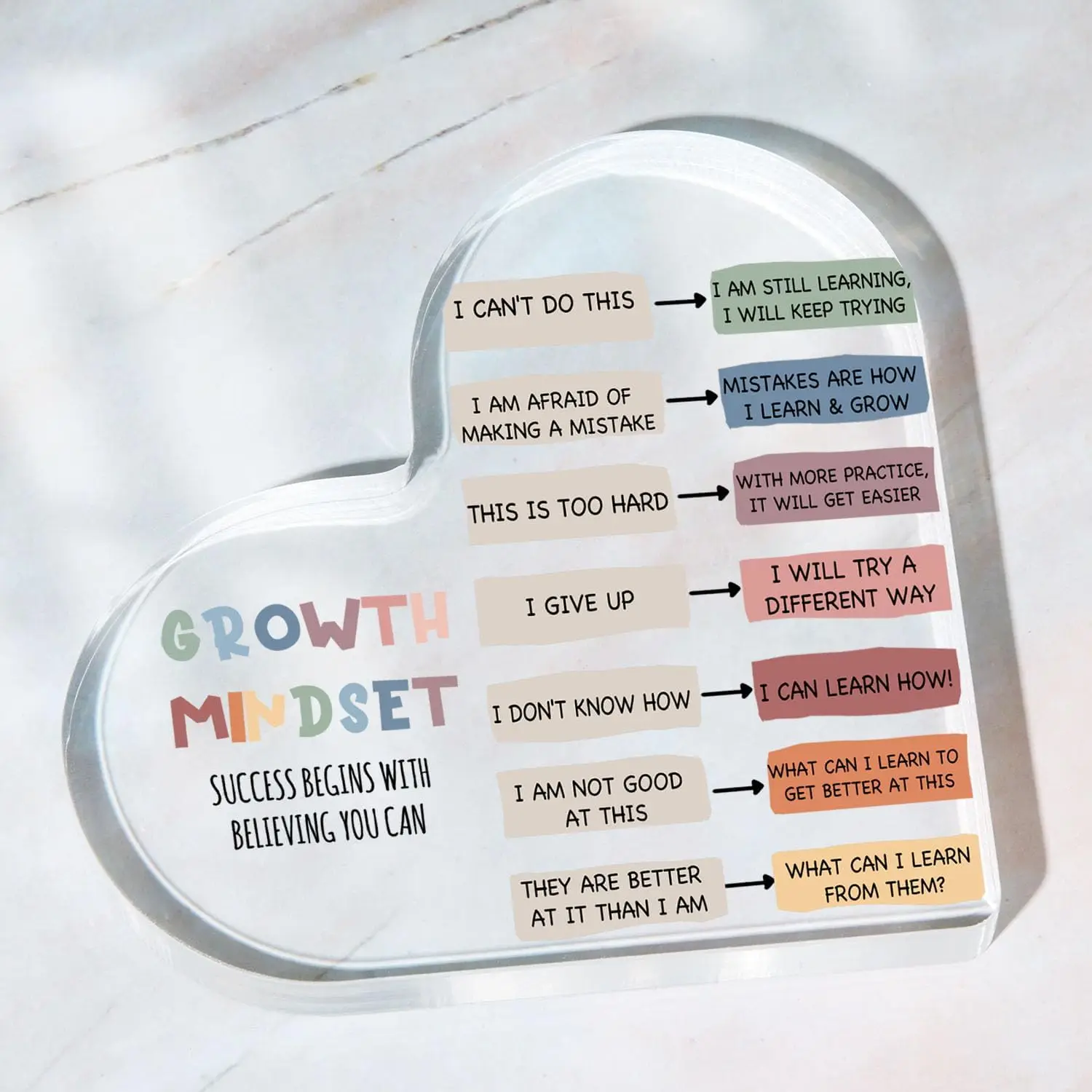 Growth Mindset Decor, Mental Health Therapy Office Classroom Art Educational Acrylic Heart Inspirational Gift