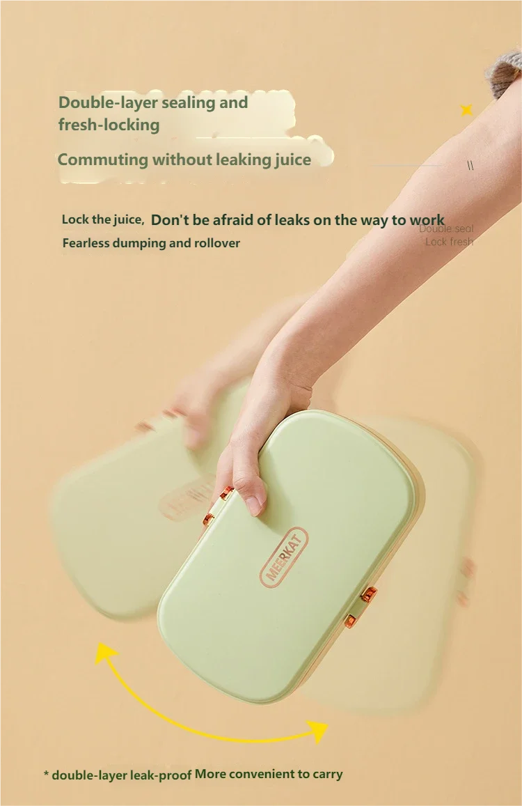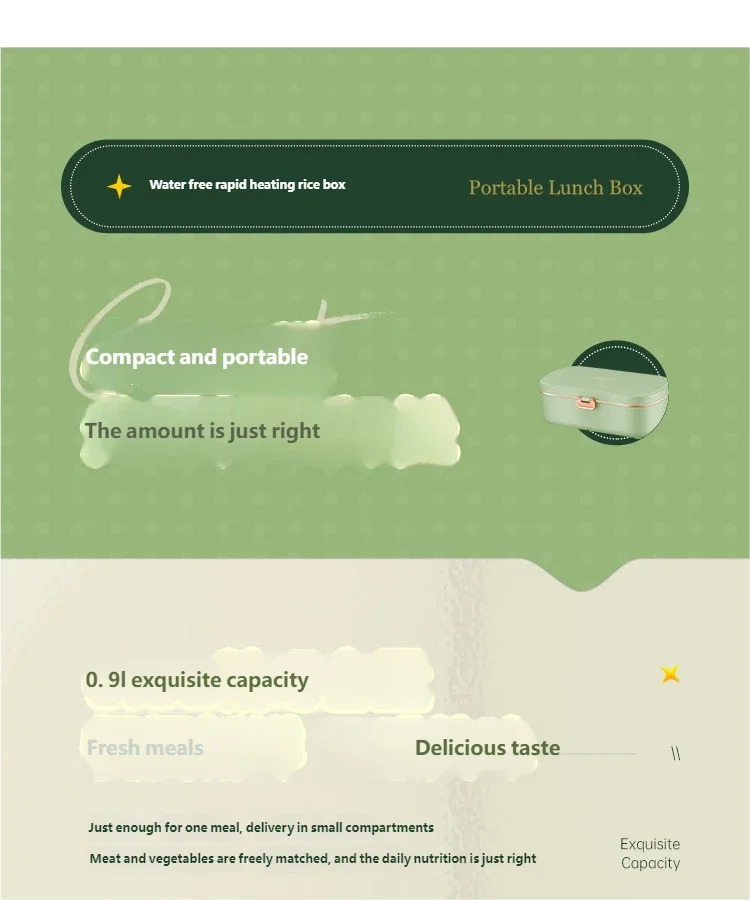 HOMEFISH Stainless Steel Electric Lunch Box Food Warmer Bento Box Water-Free Heating Office Lunch Container with Built-In Heater