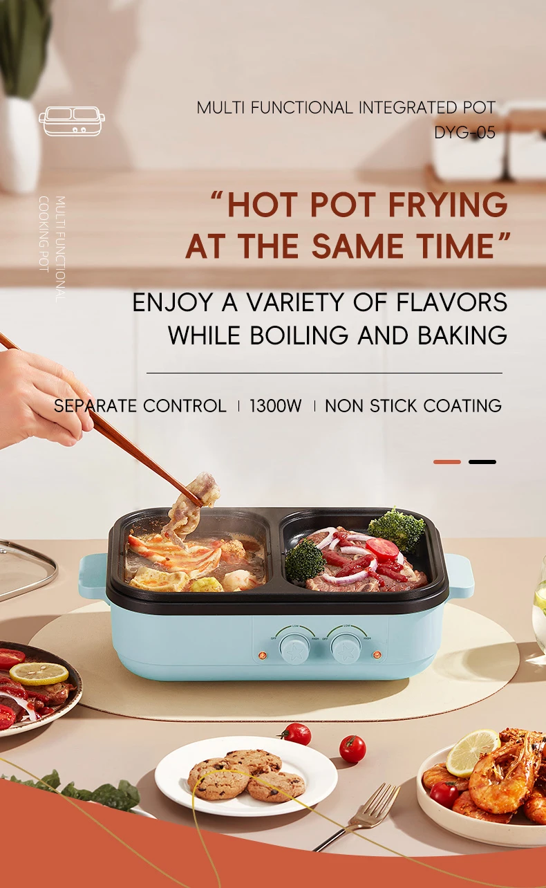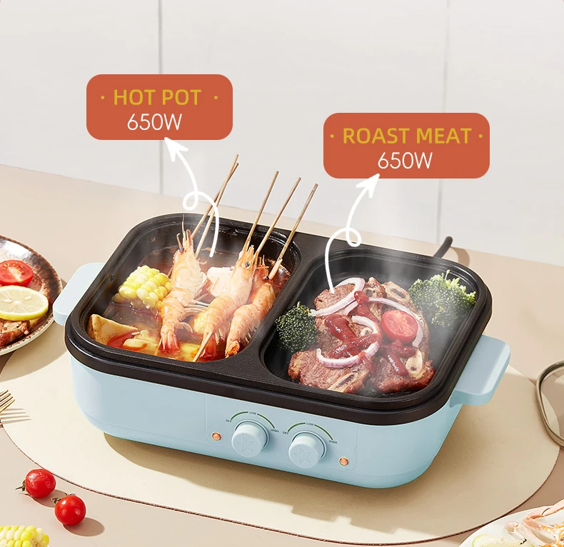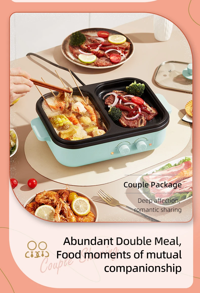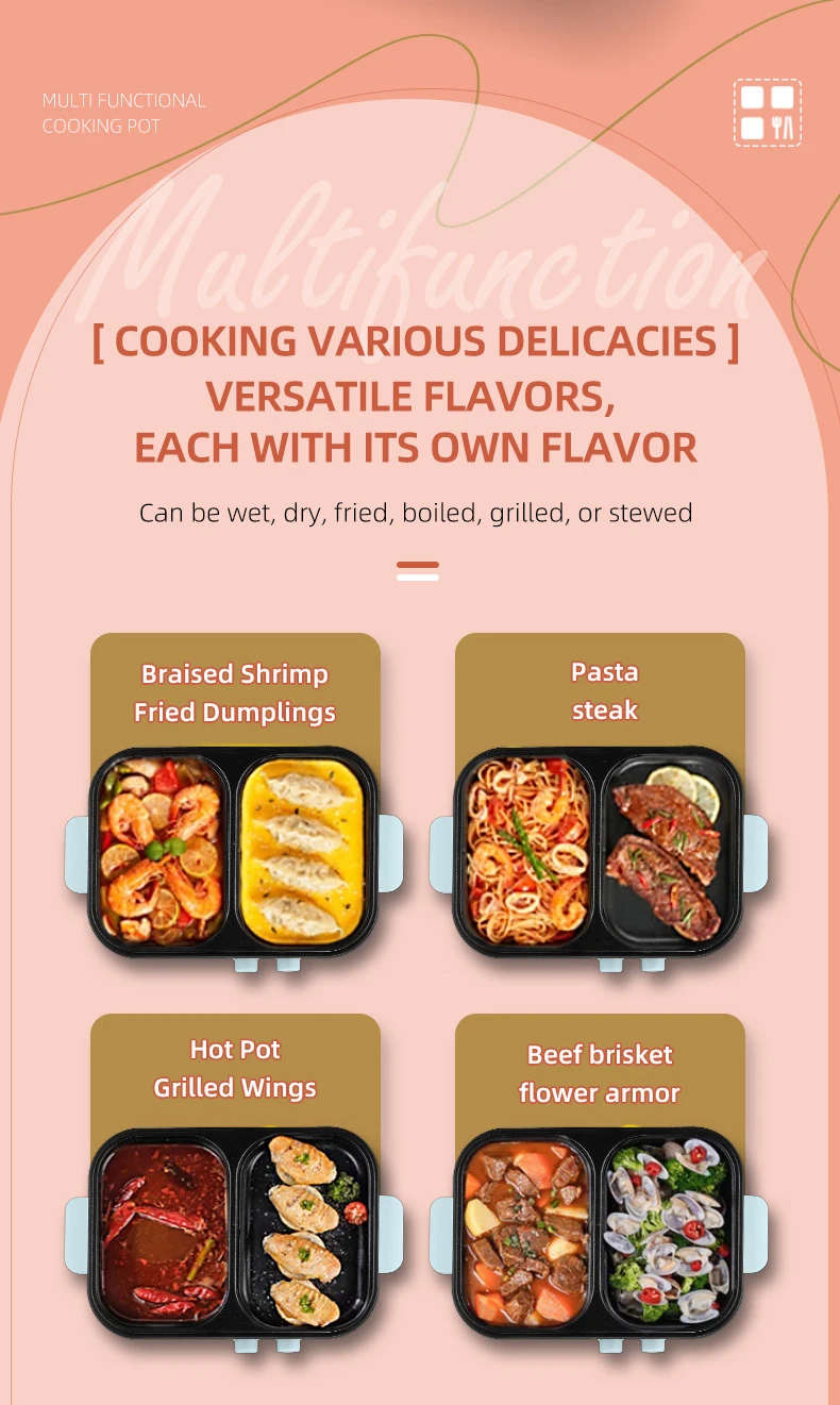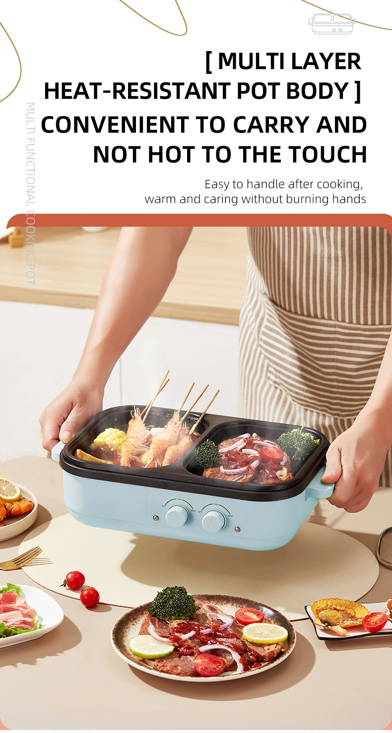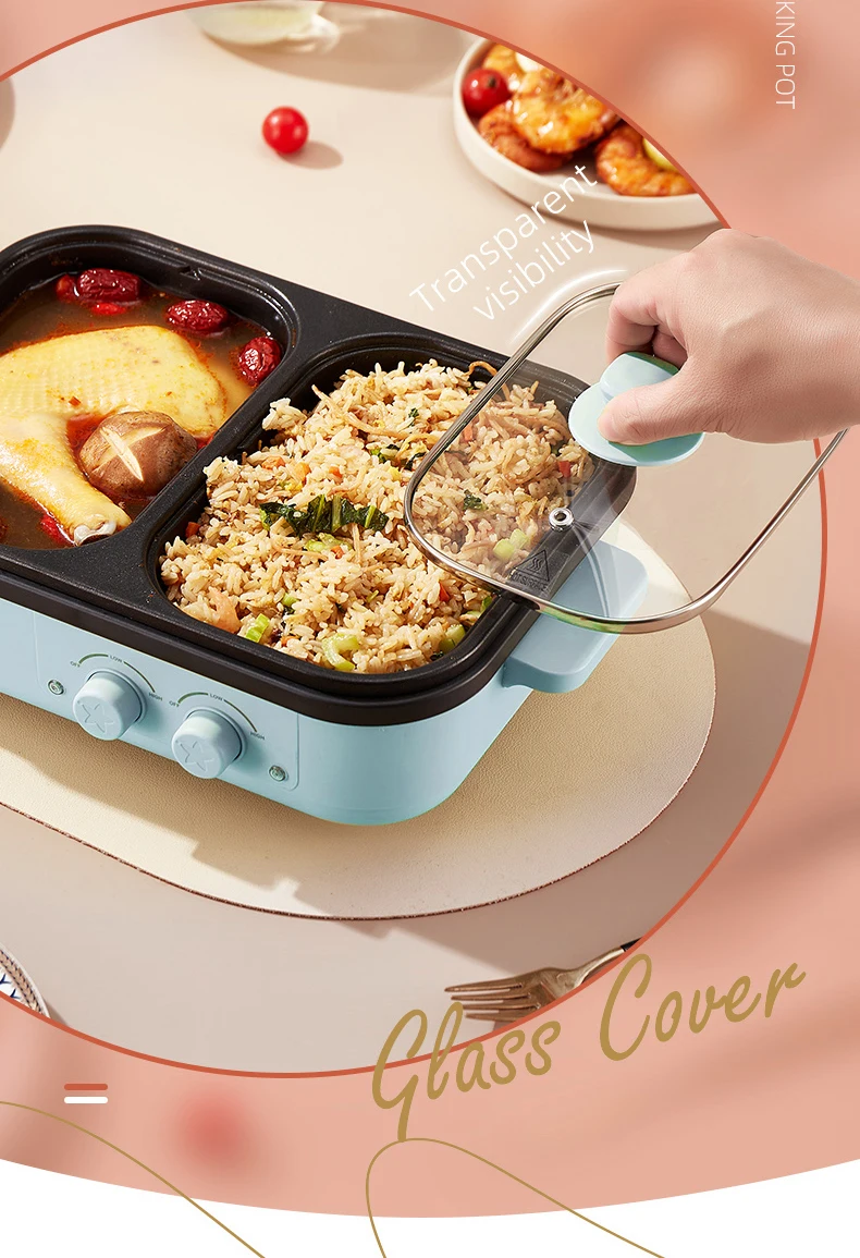 Multifunctional Electric cookers, 2 in 1 Electric Hot Pot BBQ Household Multi cooker machine, Non-Stick cooking pot 220V 110V