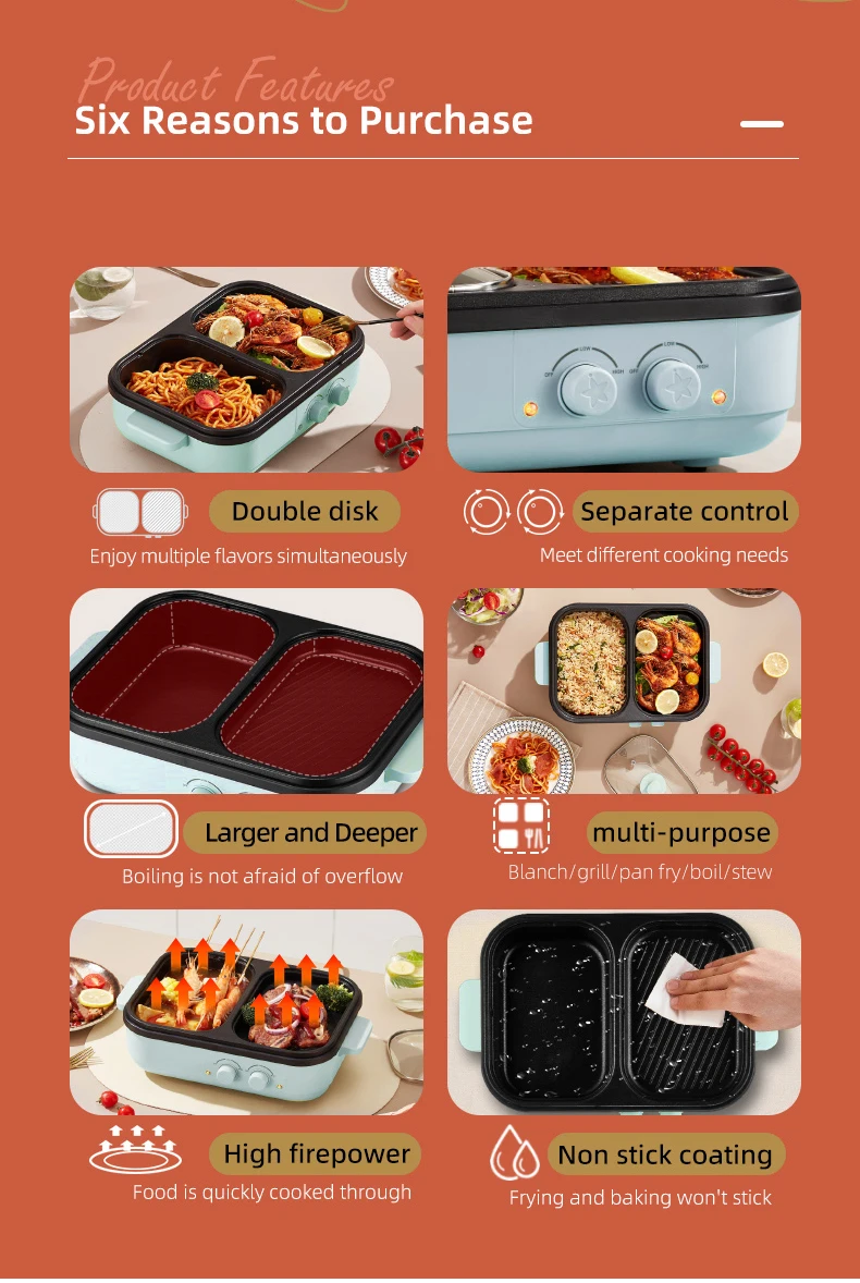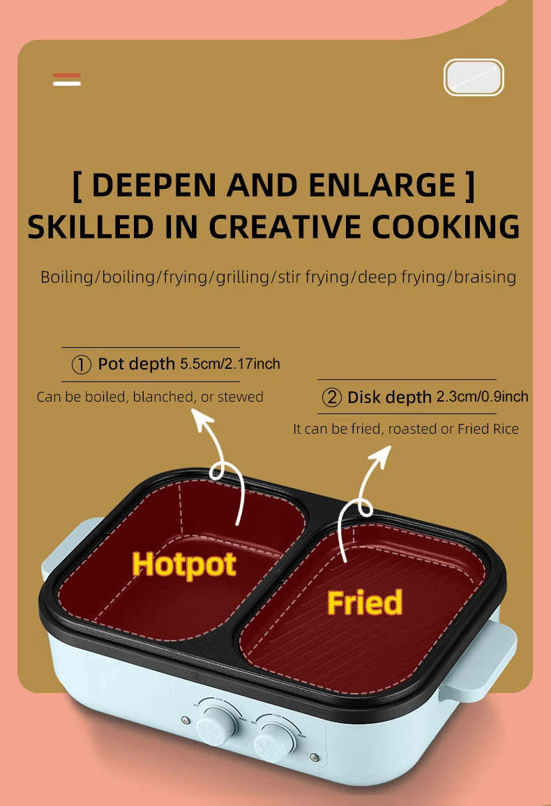 Application:It is suitable for barbecue, frying, soup making, and hot pot. It can be used in homes, dormitories, and rental houses, and can also be used outdoors on balconies with sockets.