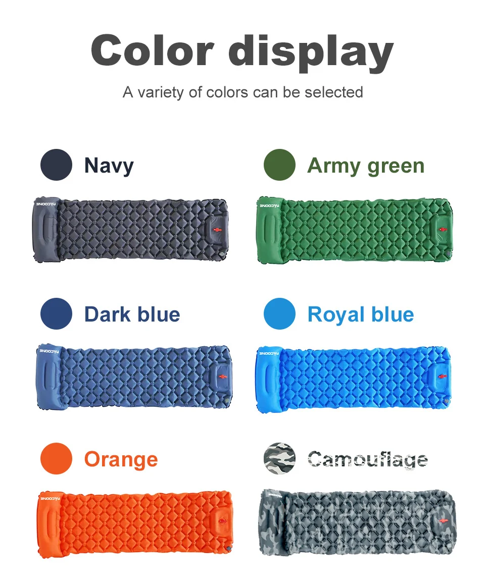 2.Our camping sleeping pad is made of 40D nylon and TPU coated material, durable, hard-wearing, and no tearing. The camping mattresses are easy to clean, if there is dust or grime, just wipe them down. Designed for harsh outdoor environments, it is your best companion while camping